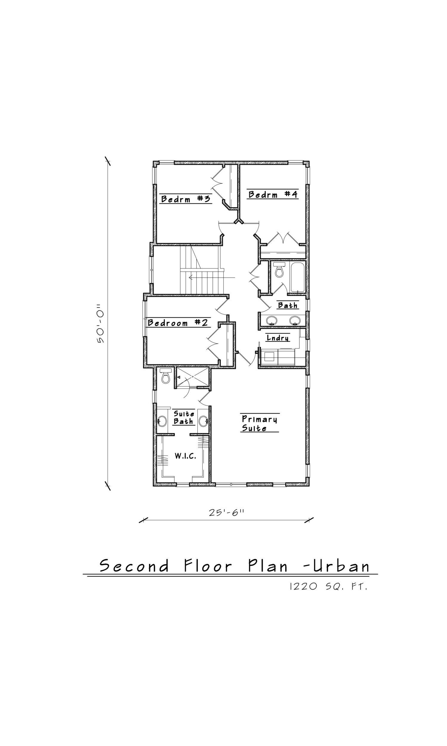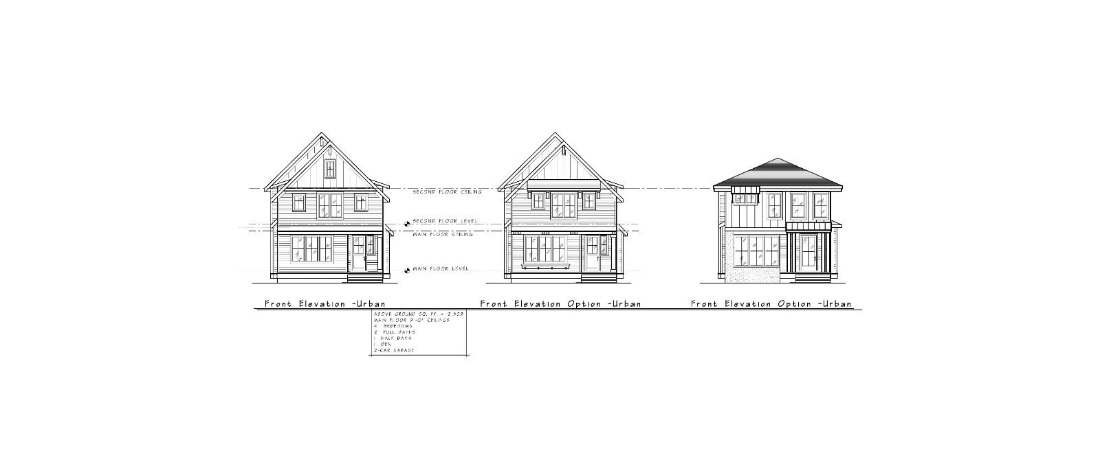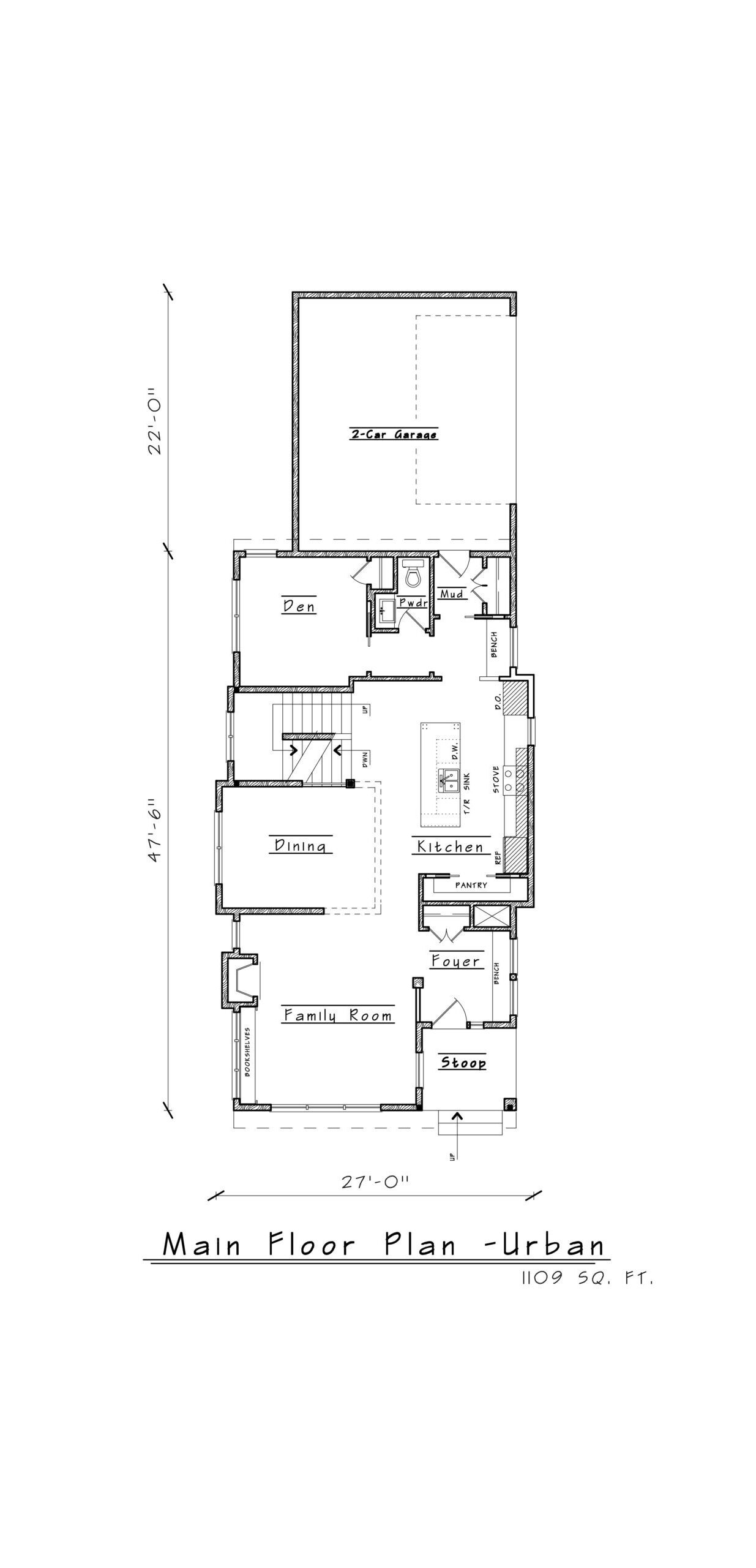 Our most flexible model, Urban can easily be converted to fit your lot and your needs. Maximizing living space with a Front Stoop opening to a protected Foyer, you’ll enter into an Open Concept Family/Dining area which we can configure to suit your desired configurations for television and dining. The Chef’s Kitchen has every possible convenience and a walk-in pantry, too. A Den in the rear of the home could easily be converted to a Guest Bedroom or ADU with its closet and ½ bath. A mud room leads to a 2-car Garage.